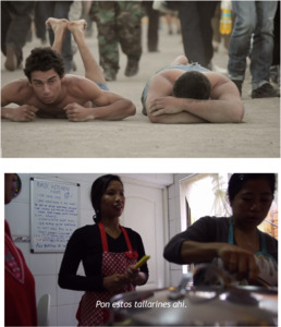 In the tradition of Gay’s Atlas, Mapa Fílmico offers a multifaceted representation of the Chilean nation through images. Jacob observes that the atlas “needs to be lifted, opened, and leafed through” (67). MAFI embraces the participatory quality of this cartographic genre by inviting viewers to forge their own journeys.[23] Whether it is the depiction of two prostrate religious pilgrims at the Fiesta de la Tirana in the northern region of Tarapacá in Christopher Murray’s Señor, ten piedad (2012) or a class in Concón in which Filipina women learn to cook traditional Chilean food for their jobs as maids in Carlos Reyes’s Basic Kitchen Rules (2015), Mapa Fílmico offers a myriad of ways to see, experience, and think about Chile.